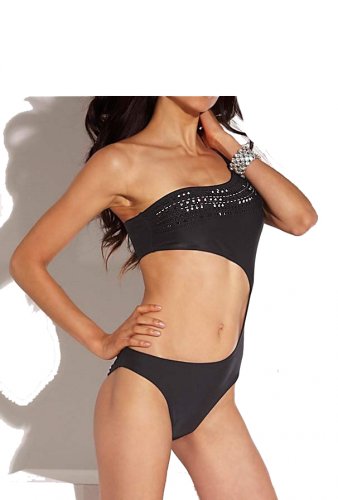 Heißer Strandauftritt garantiert. Betont raffinierter, asymmetrischer Monokini mit viel Sexappeal und aufregenden Glam-Details, entlang des Dekolletés mi funkelnden Jet-Stones, Strass-Steinen, Perlen und Stäbchenperlen üppig bestickt. Einseitiger Träger. Aus 80% Polyamid/20% Elasthan. Futter aus 100% Polyamid.ehemaliger UVP: ¤ 99.00