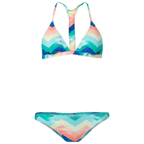 Sportlich, sportlich - der Sportslycra Racerback Bikini von O´Neill strahlt in regenbogenfarbenem Zickzackmuster. Das Bikini-Oberteil sitzt prima durch die herausnehmbaren Pads und den sportiven Ringerrücken. Die Hose hat normal hohe Beinausschnitte. Material: 71% Polyamid, 29% Elastan