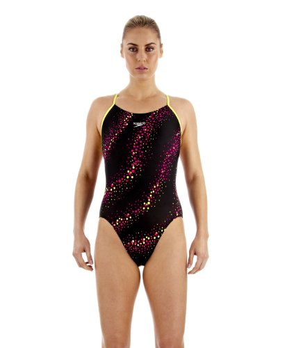 Speedo Damen Badeanzug Pulseride Allover Rippleback, schwarz/gelb, 38, 8083618679 Spesification