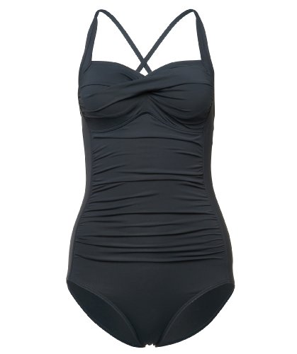 So elegant kann es an Pool und Strand zugehen: Der Hot Stuff Badeanzug bietet mit Bandeau-Einsatz und feinen Plissierungen an der Vorderseite eine superschicke Optik. Für den besonderen Tragekomfort hat Hot Stuff den Badeanzug mit eingenähten Pads und verstellbaren Trägern ausgestattet, die gerade nach hinten getragen oder am Rücken gekreuzt werden können. Ein schmaler Silikonstreifen auf der Innenseite sorgt für guten Sitz am Dekolleté. Merkmale: - Bandeau-Einsatz - eingenähte Softpads - Träger in der Länge verstellbar u. am Rücken einhakbar - Silikonstreifen an der Innenseite des Dekolletés - Raffungen an der Vorderseite Material: 87% Polyamid, 13% Elastan