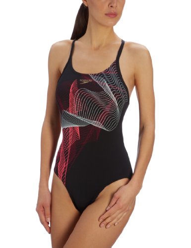 Speedo Damen Badeanzug Turbodrill Placement Turnback, schwarz/pink, 40, 8031848344 Spesification